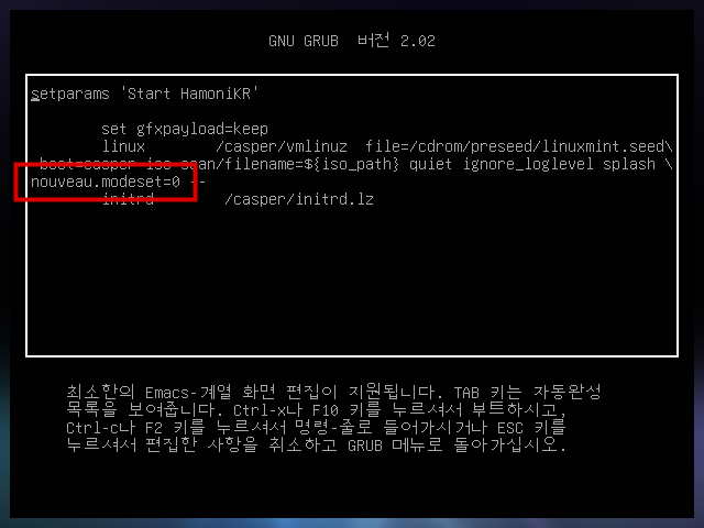 위와 같이 quiet splash 다음에 nouveau.modeset=0 를 입력하세요.