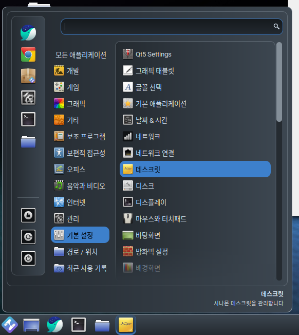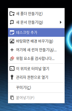 상단 관리 메뉴에서 설치된 데스크릿 항목을 확인할 수 있하단의 + 혹은 - 를 눌러 데스크릿을 추가하거나 제거할 수 있습니다.