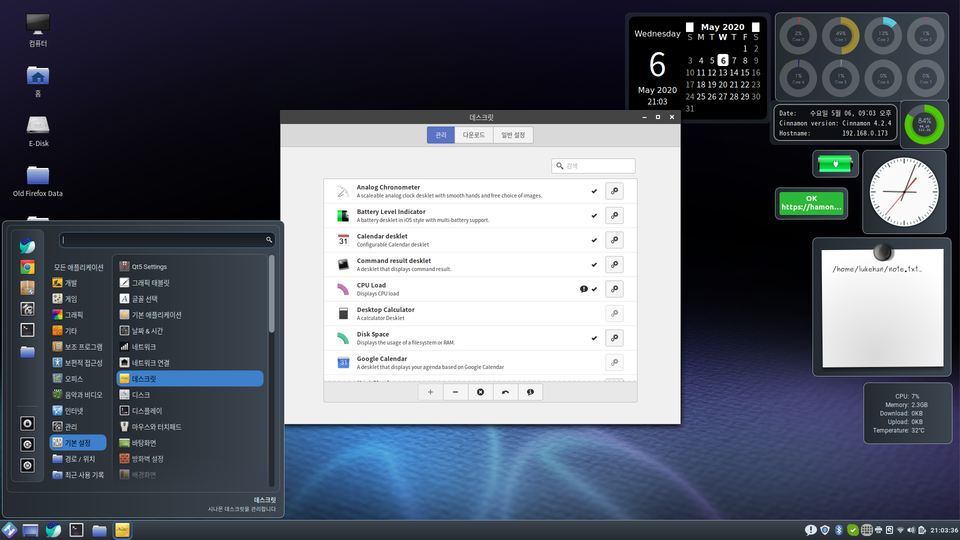 좌측 하단 '메뉴 > 기본 설정 > 데스크릿' 을 실행합니다.