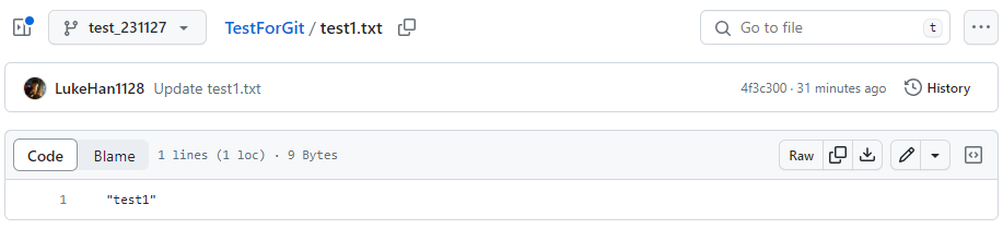 해당 문서에서는 test_231127 로 branch 를 생성하여 진행 하였다.