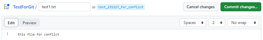 해당 문서의 경우 test_231127_for_conflict 로 설정 진행한다.