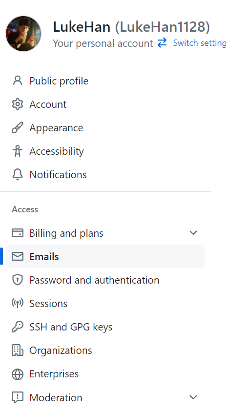 Github 에서 사용 중인 메일 계정에 다른 메일 추가 하기 본문