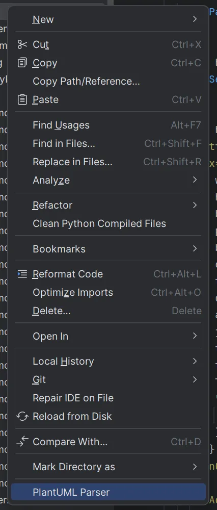 위와 같이 PlantUML Parser 메뉴를 확인할 수 있습니다.