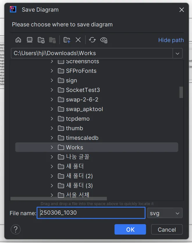 png 로 저장하는 경우 현재 보이는 화면만 저장되니 svg 로 설정하여 저장 합니다.