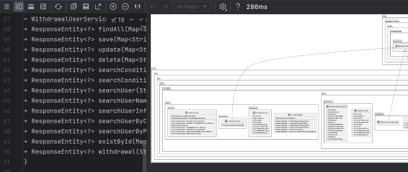 위와 같이 Class Diagram 이 생성되는 것을 확인할 수 있습니다.
