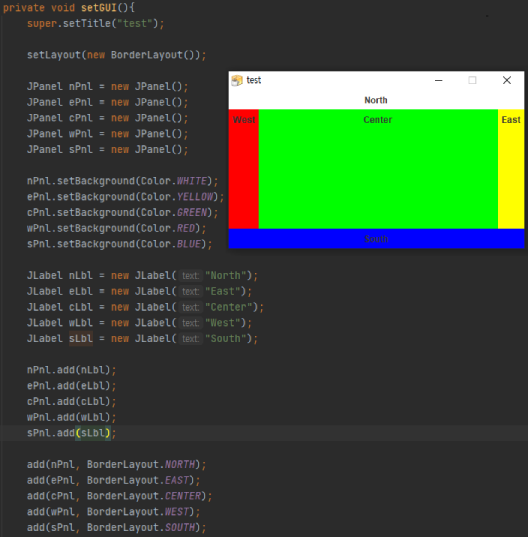 JPanel 은 setLayout 이라는 설정을 통해 내부 구성을 정의할 수 있습니다.