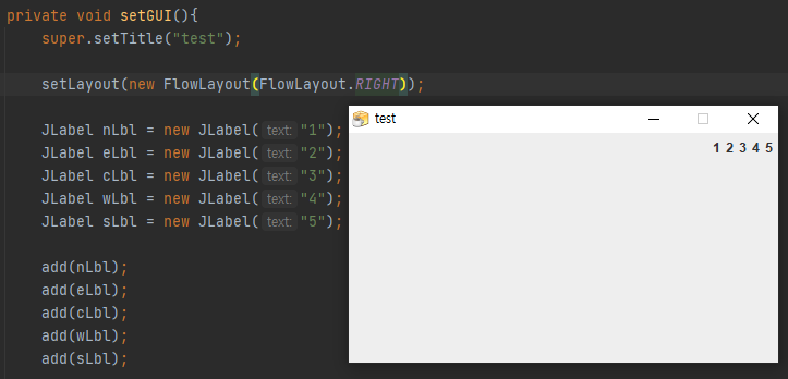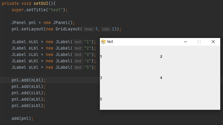 JPanel 은 setLayout 이라는 설정을 통해 내부 구성을 정의할 수 있습니다.
