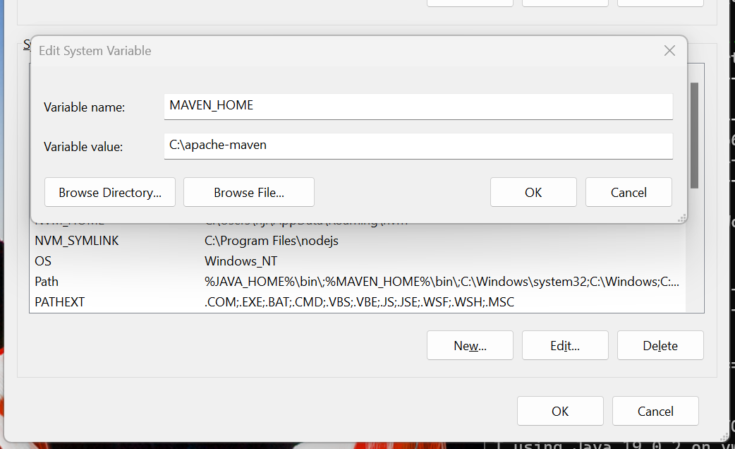 상단 변수 이름에 MAVEN_HOME 을 입력합니다.
