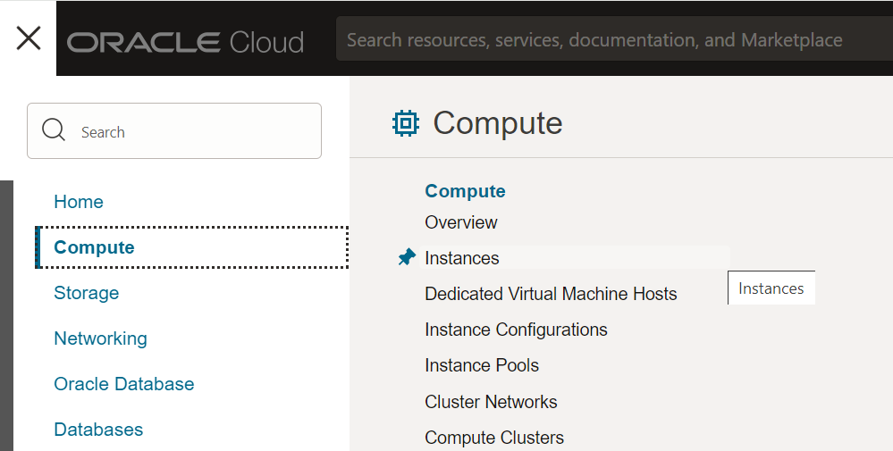 위와 같이 좌측 상단 삼선 메뉴 > Compute > Instances 클릭 실행한다.