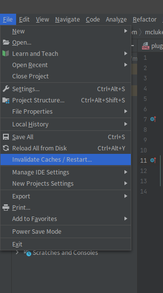 위와 같이 상단 메뉴 'File > Invalidate Caches / Restart...' 메뉴를 클릭 실행 한다.