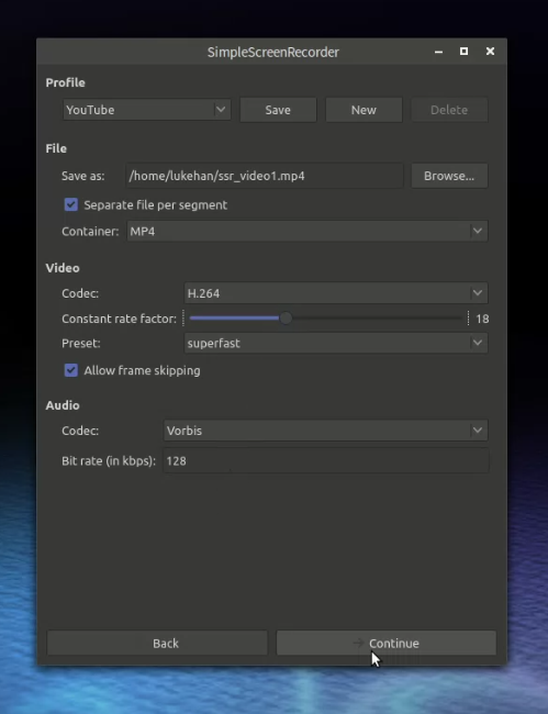 Frame rate 는 18 ~ 24 로 설정할 것을 권장 드립니다. Frame rate는 낮으면 화면이 끊어져 보이고 높으면 용량이 커집니다.