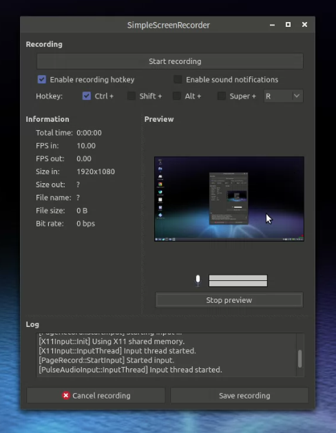 상단 Recording 메뉴의 Start recoding 버튼을 클릭하여 녹화를 시작합니다.