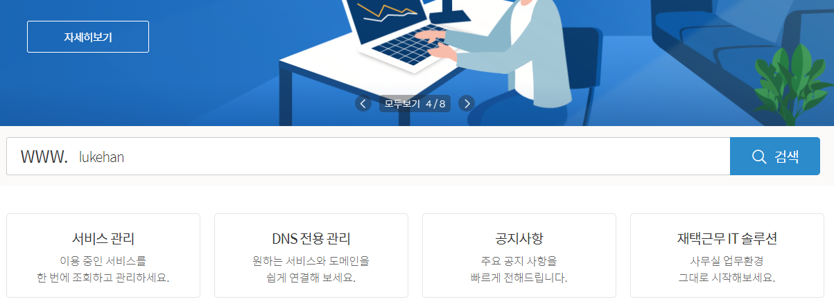 사이트 중앙의 검색창에 사용할 도메인을 입력하여 검색합니다.