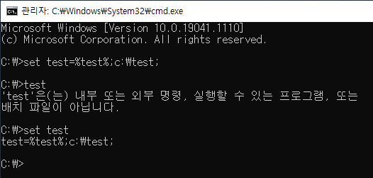 setx test "추가하고자하는변수;"